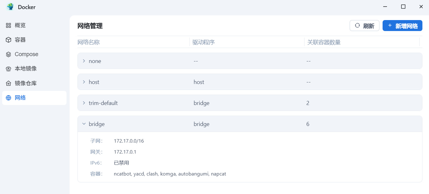 由于使用的是docker,不能直接使用localhost或127.0.0.1来连接,所以要先确认napcat的IP地址